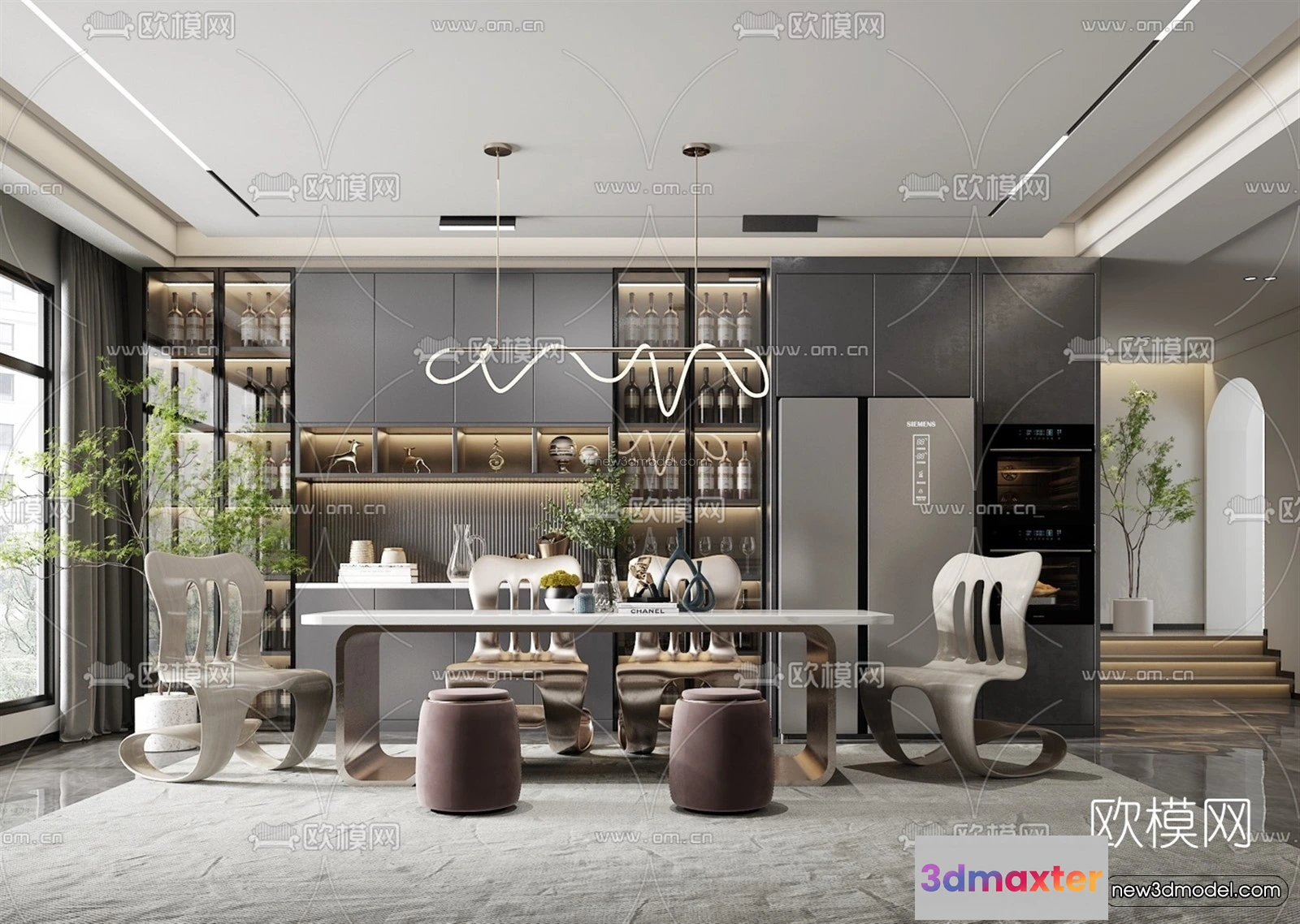 Luxury Style Interior 3D Blocks – Dining Room 3D Model – 180 – Dining Room 3D Model – VRAY