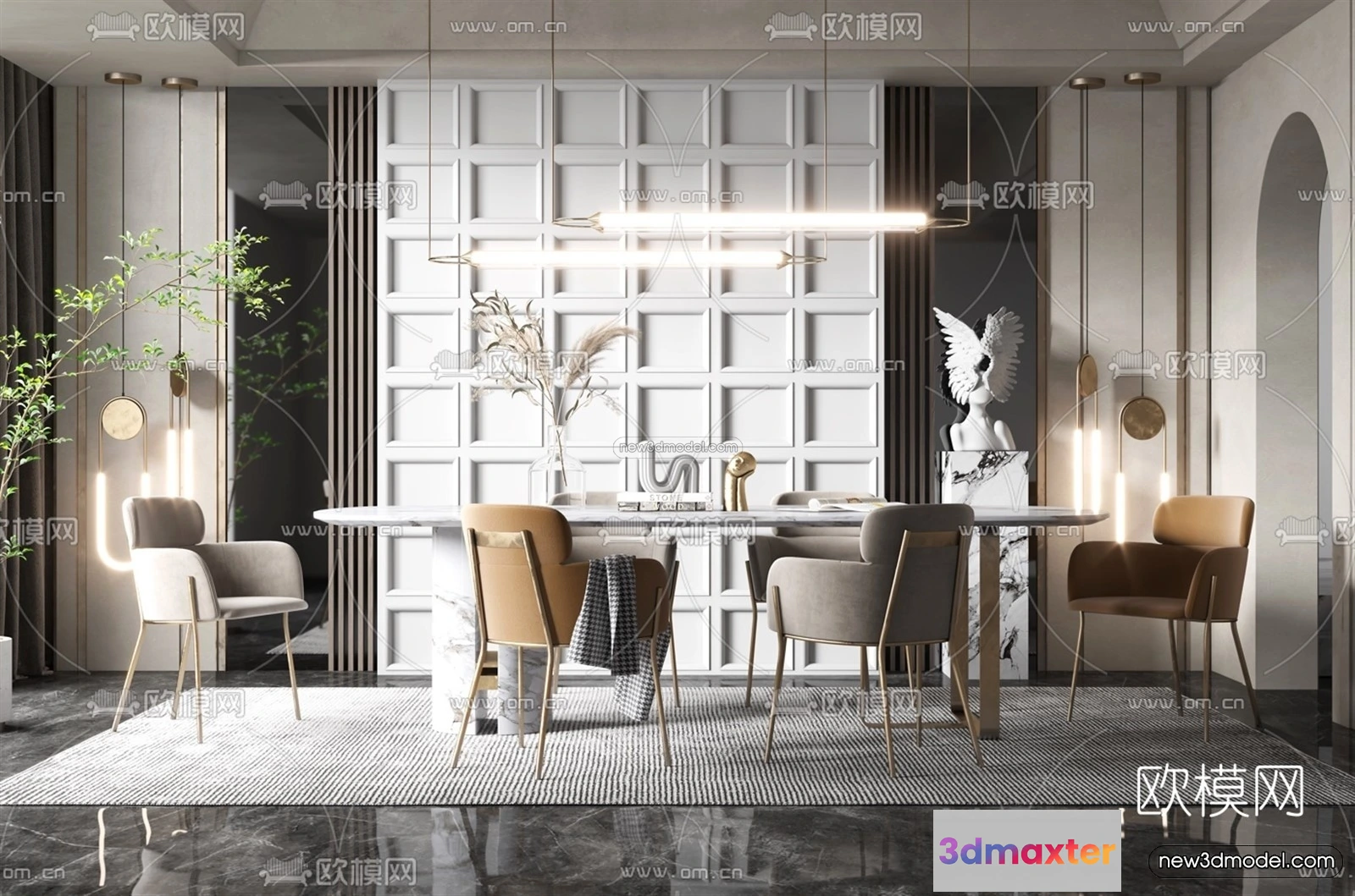 Luxury Style Interior 3D Blocks – Dining Room 3D Model – 182 – Dining Room 3D Model – VRAY