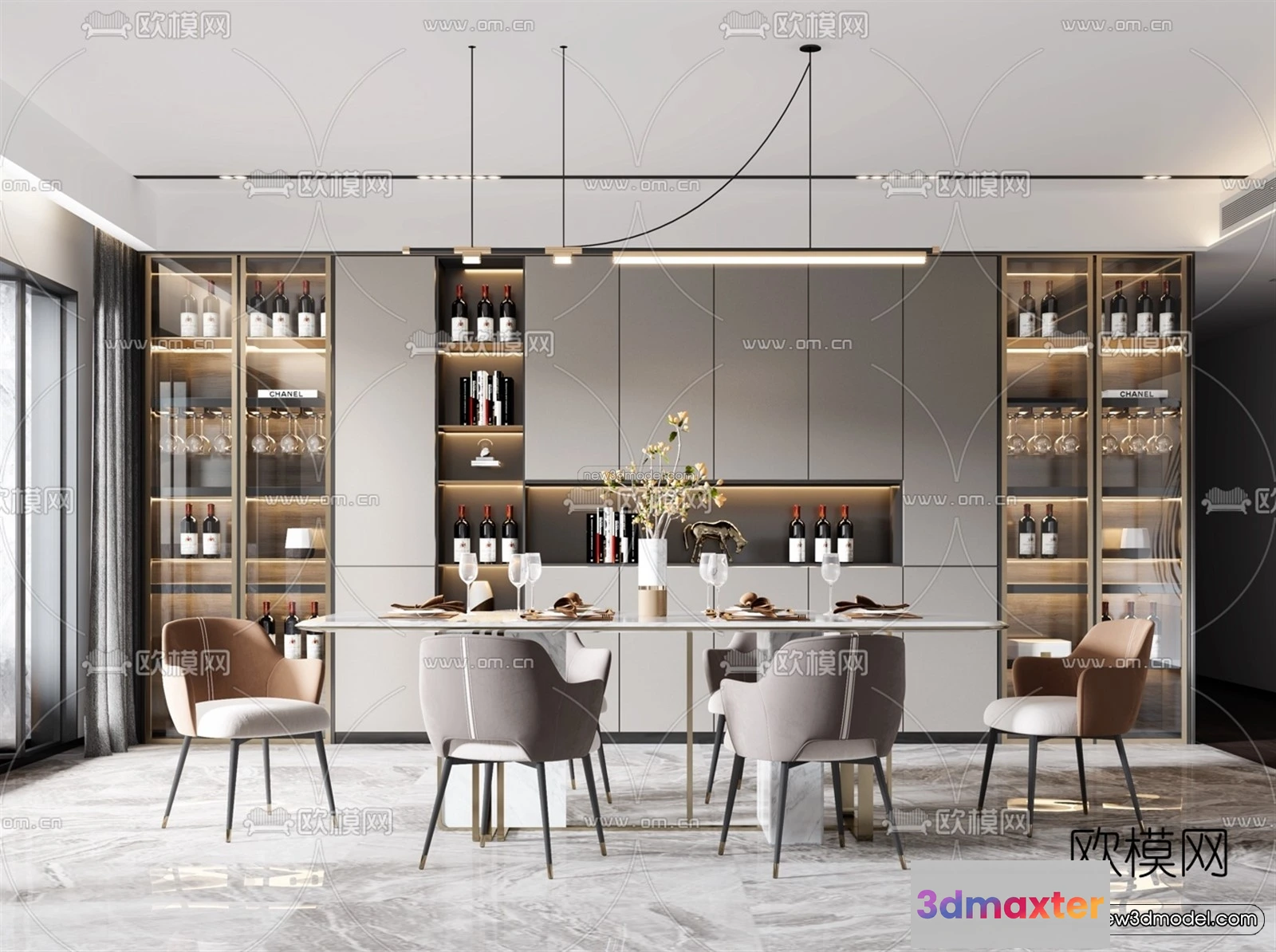Luxury Style Interior 3D Blocks – Dining Room 3D Model – 183 – Dining Room 3D Model – VRAY