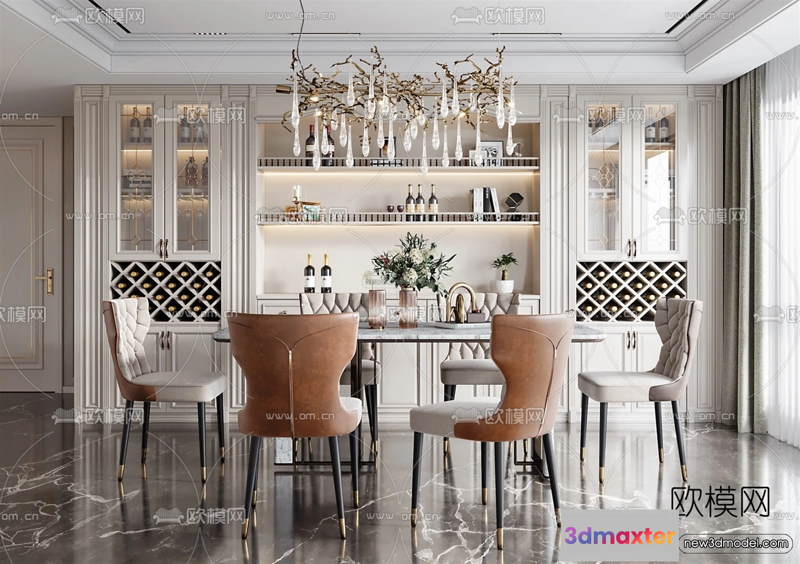 Luxury Style Interior 3D Blocks – Dining Room 3D Model – 185 – Dining Room 3D Model – VRAY