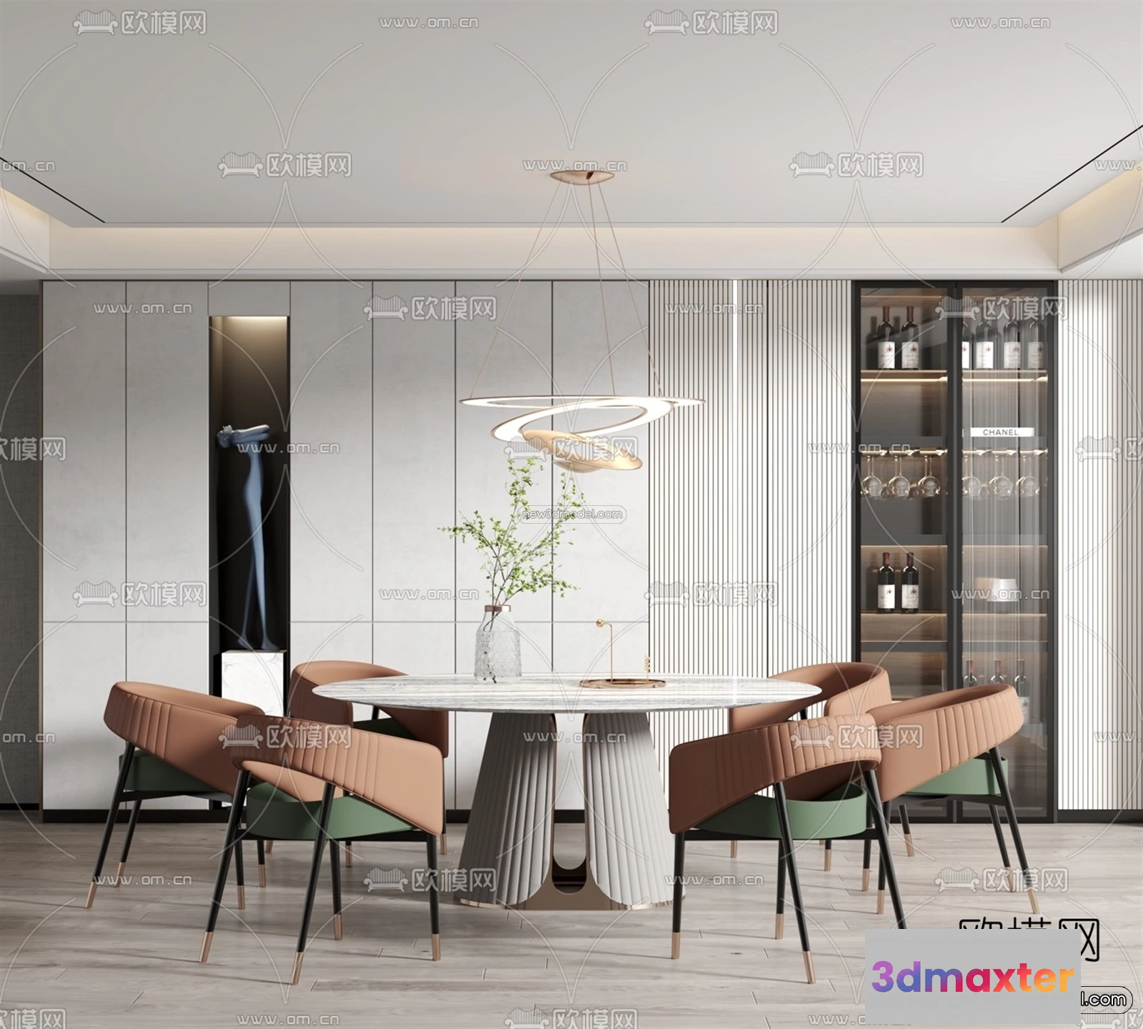 Luxury Style Interior 3D Blocks – Dining Room 3D Model – 191 – Dining Room 3D Model – VRAY