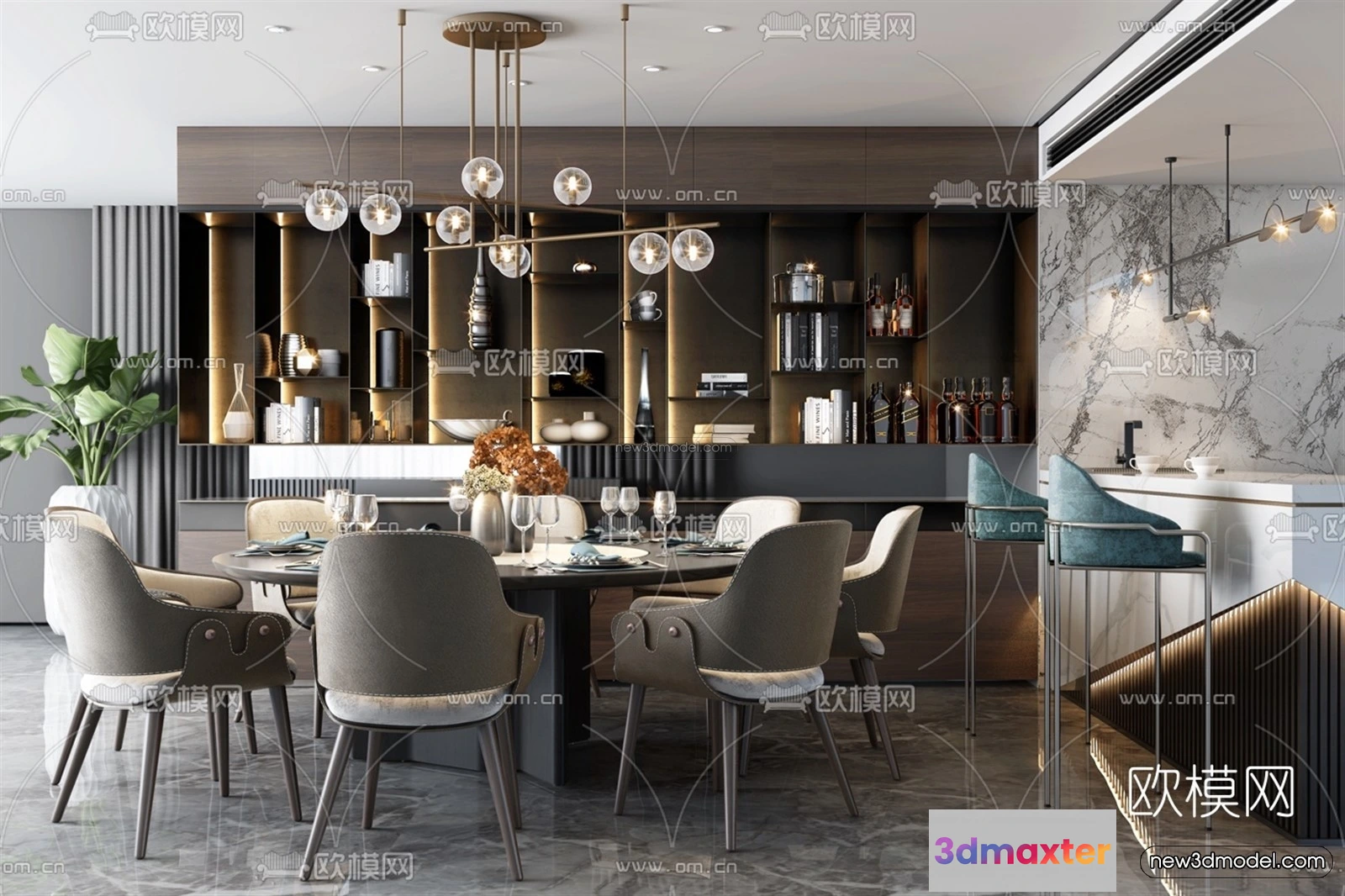 Luxury Style Interior 3D Blocks – Dining Room 3D Model – 196 – Dining Room 3D Model – VRAY