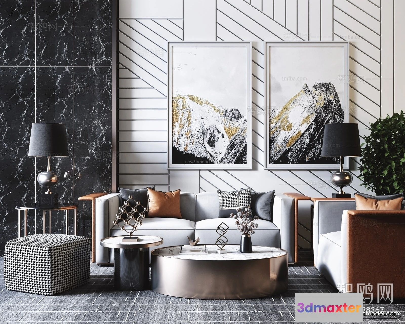 Luxury Style Interior 3D Blocks – Living Room 3D Model – 016 – Living room 3D Model – VRAY