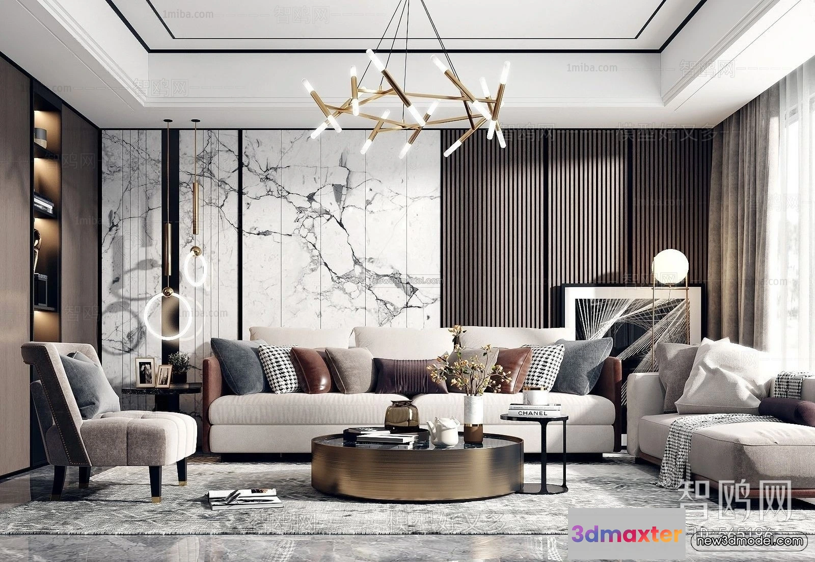 Luxury Style Interior 3D Blocks – Living Room 3D Model – 018 – Living room 3D Model – VRAY