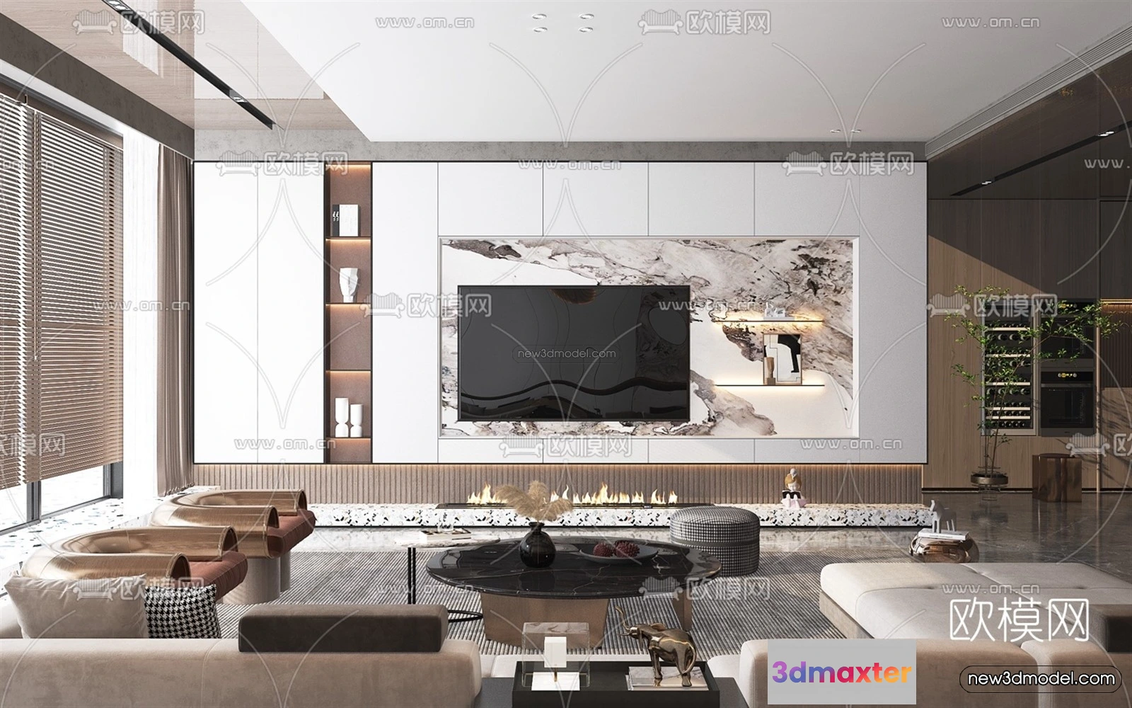 3D Models / 3D Scenes / Interior / Living Room / Luxury Style Interior 3D Blocks – Living Room 3D Model – 048 3D Max