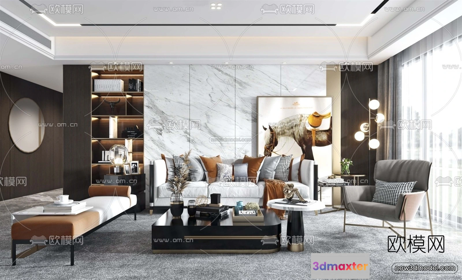 Luxury Style Interior 3D Blocks – Living Room 3D Model – 057 – Living room 3D Model – VRAY