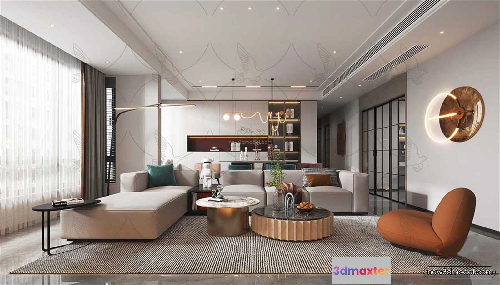 - Name: Luxury Style Interior 3D Blocks – Living Room 3D Model – 061