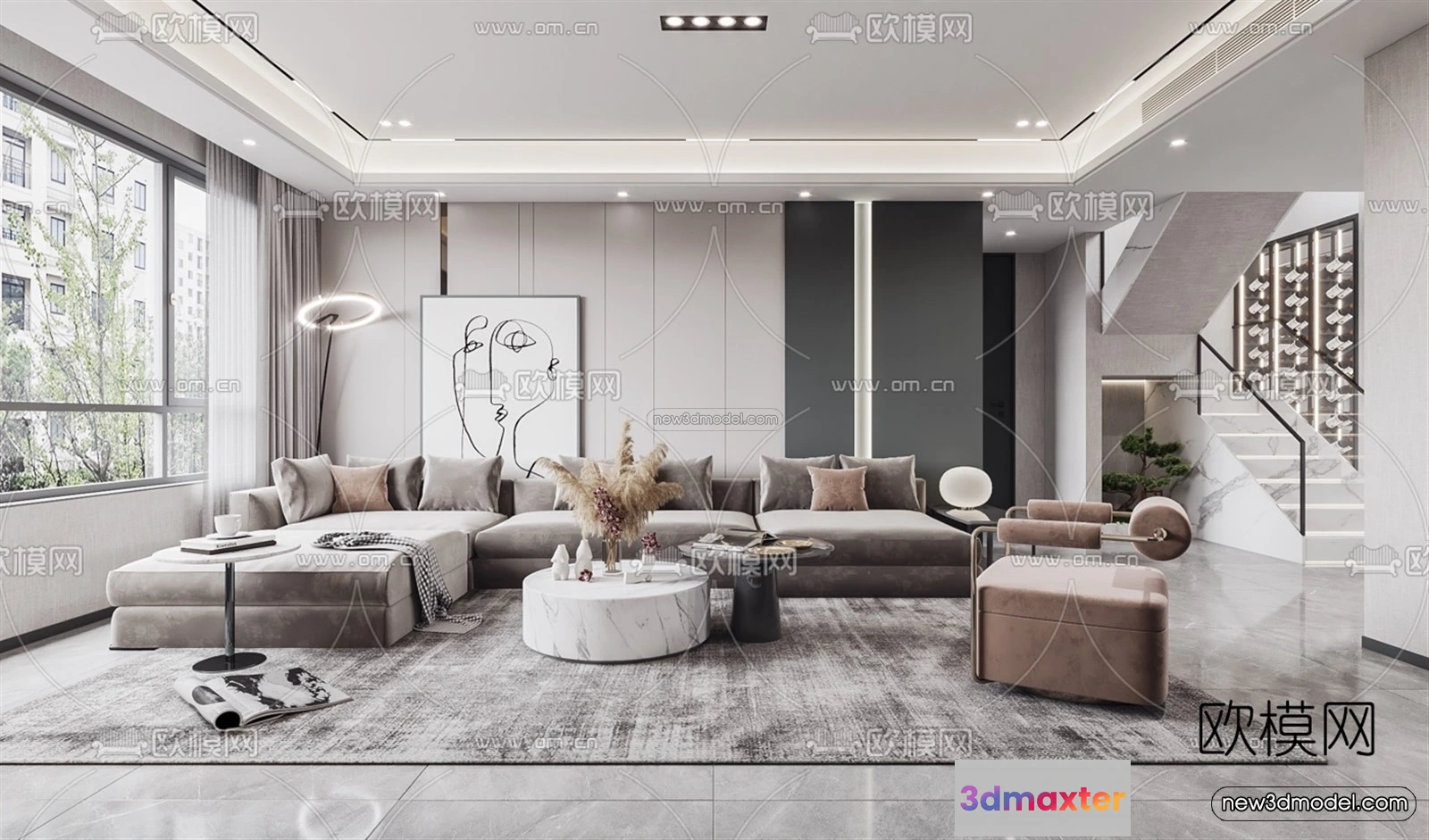 3D Models / 3D Scenes / Interior / Living Room / Luxury Style Interior 3D Blocks – Living Room 3D Model – 077 3D Max