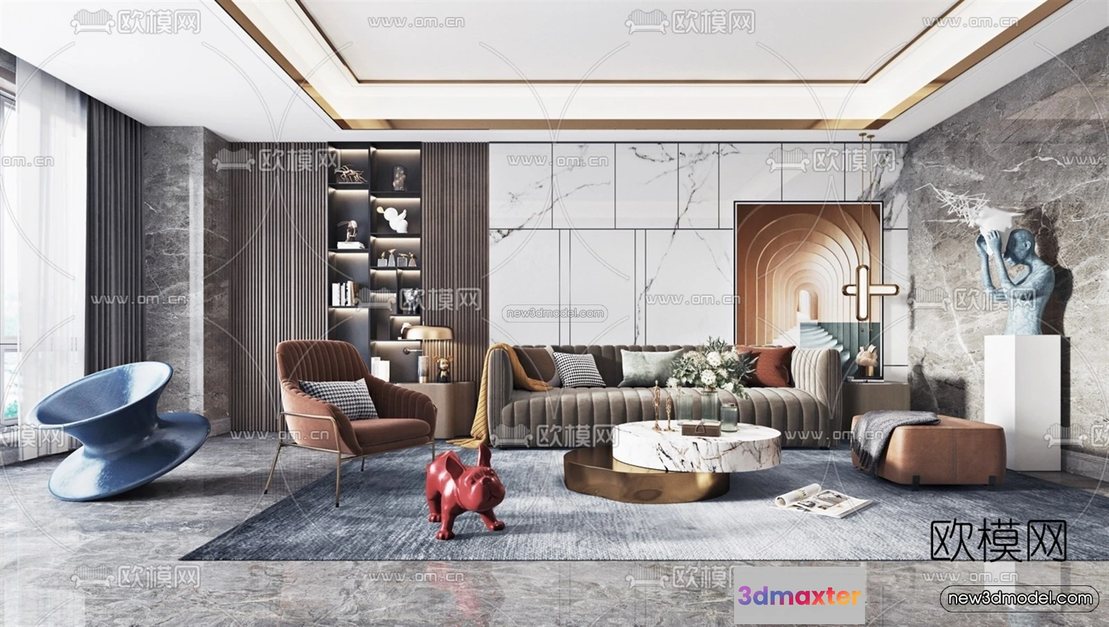 Luxury Style Interior 3D Blocks – Living Room 3D Model – 081 3D Max