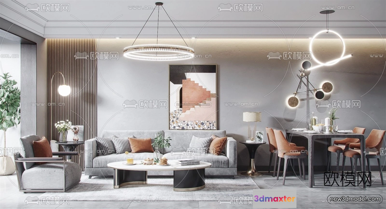 Luxury Style Interior 3D Blocks – Living Room 3D Model – 094 – Living room 3D Model – VRAY