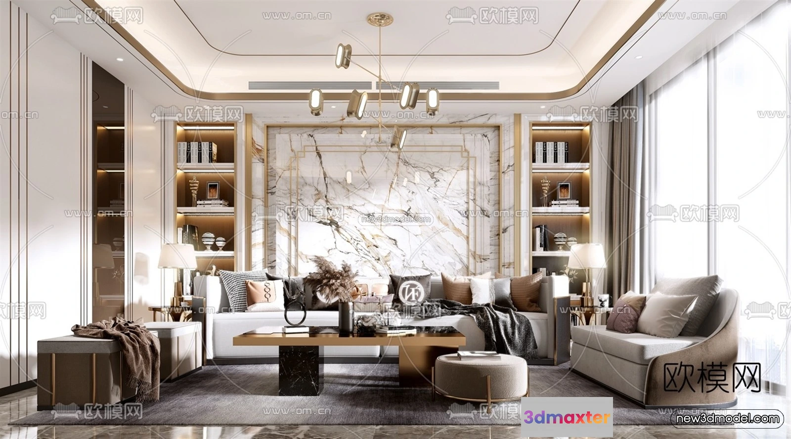 Luxury Style Interior 3D Blocks – Living Room 3D Model – 112 – Living room 3D Model – VRAY