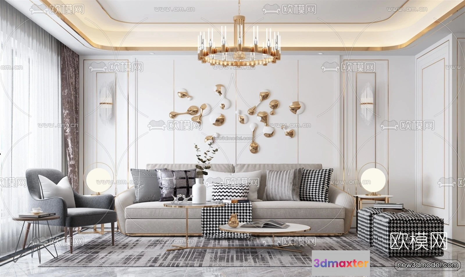 Luxury Style Interior 3D Blocks – Living Room 3D Model – 129 – Living room 3D Model – VRAY