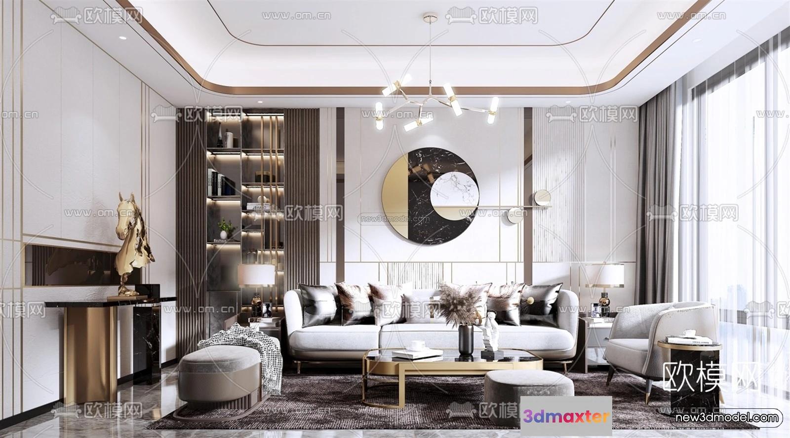 3D Models / 3D Scenes / Interior / Living Room / Luxury Style Interior 3D Blocks – Living Room 3D Model – 146 3D Max