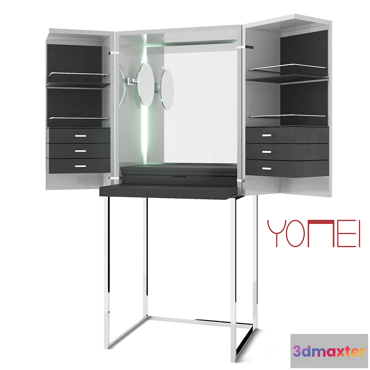 MAGIC CUBE – a multi-functional personal wardrobe of Yomei which offers three different functions in one design. Opening minimalist dresser used as a make-up / dressing table a coffee / bar cabinet or a computer / workstation. Dimensions: 60 * 144 * 508 (width / height / depth) Details: http://www.yomei.de/magic-cube-53.html in the file: texture Corona 3DsMax of 2011 and 2014 FBX OBJ