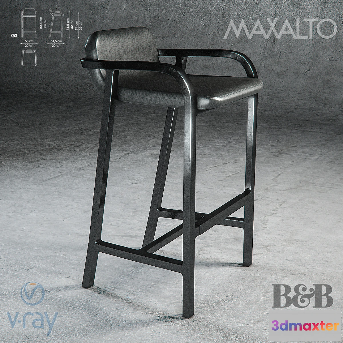 The archive 2 model: height 805 mm and 905 mm. Textures are present extended from the manufacturer’s website and are presented in suitable condition for use. The objects used ResetXform. The models have anti-aliasing. Way textures erased. Use of health). Manufacturer Website: http://www.bebitalia.com/ru/products/chairs-fulgens-15-391.html