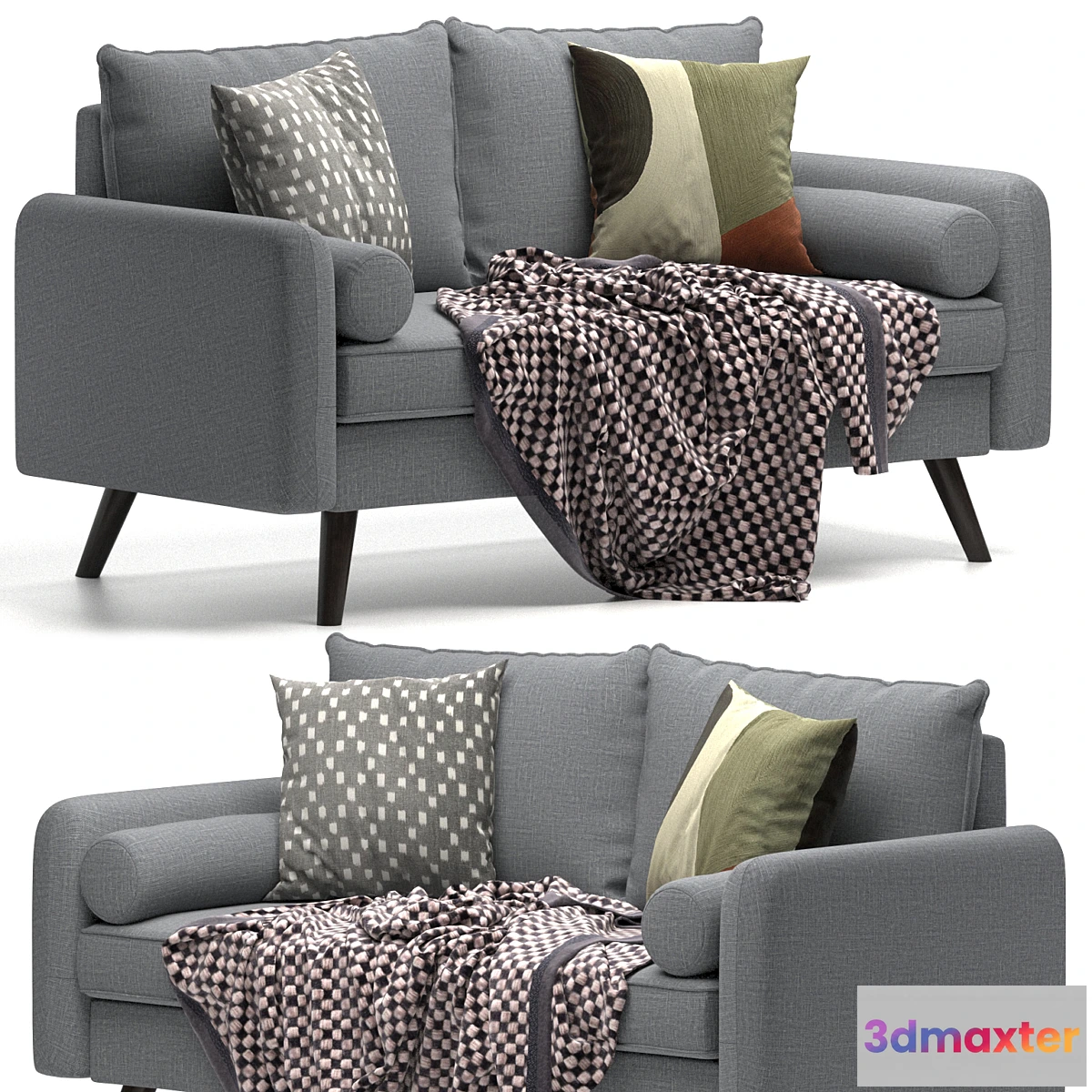 Definitely an unique center piece the sofa accomplishes updating a retro design with contemporary personality and design. Frame built with kiln dried hardwood topped with pocket Dream Coils® high density foam cushions and high-grade Gray or Sea Foam upholstery fabric providing support with comfort. The product sets the tone of the room where elegance and style follows naturally. Also featuring elegantly wood turned hairpin legs and two round throw pillows complete the design to make the product a room anchor. The product is designed for versatility but robustly constructed to take the punishment of a happy family yet remaining beautiful without losing its charm.