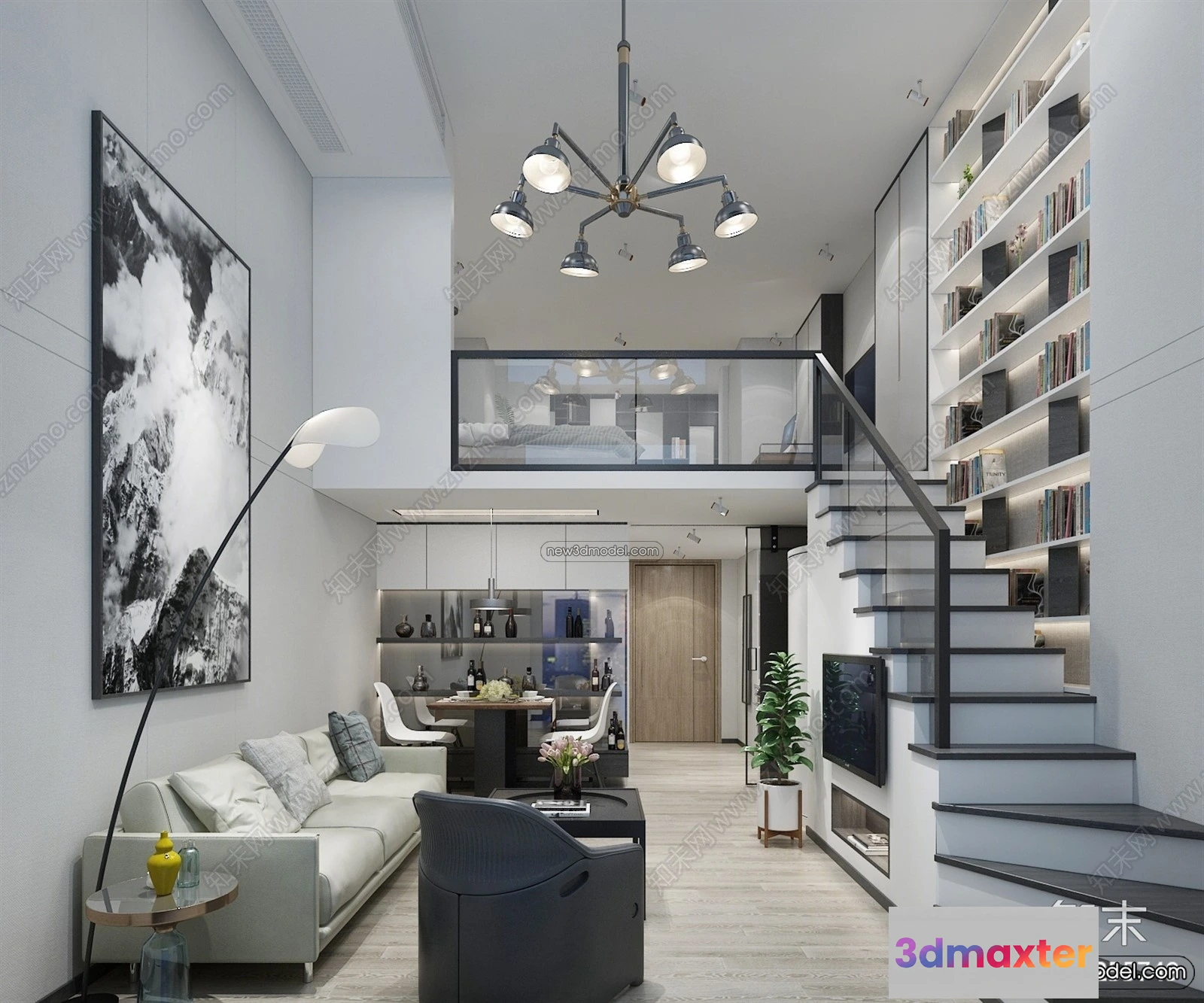 3D Models / 3D Scenes / Interior / Mezzanine Floor – 3D Interior Scene – 3D Models – Modern Style – 010 3D Max