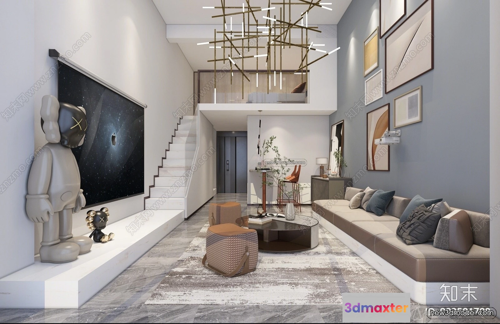 3D Models / 3D Scenes / Interior / Mezzanine Floor – 3D Interior Scene – 3D Models – Modern Style – 078 3D Max