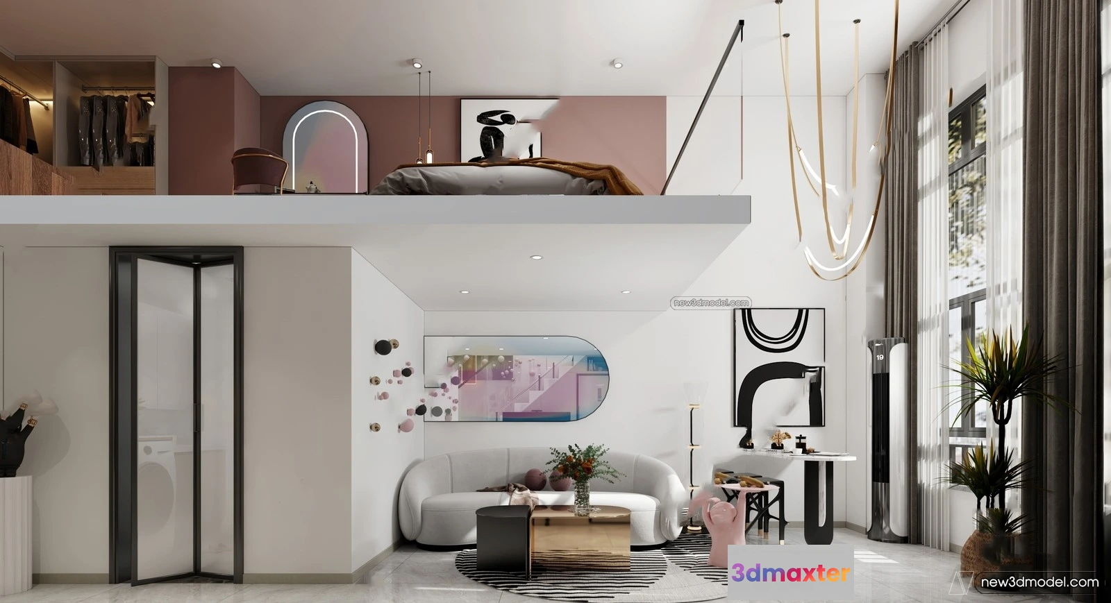 3D Models / 3D Scenes / Interior / Mezzanine Floor – 3D Interior Scene – 3D Models – Modern Style – 096 3D Max