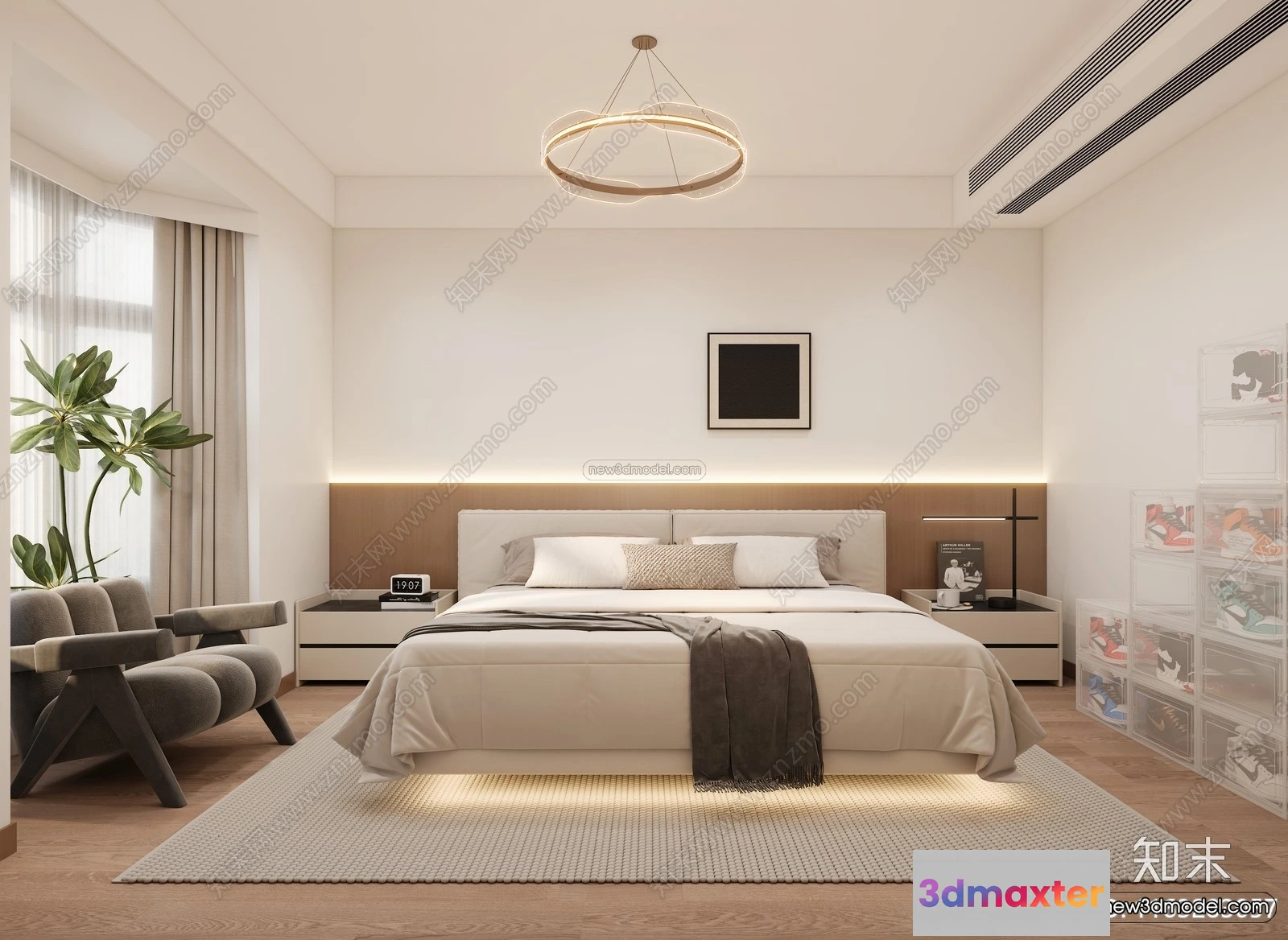 3D Models / 3D Scenes / Interior / Bedroom / Minimalist Style Interior 3D Blocks – Bedroom 3D Model – 169 3D Max