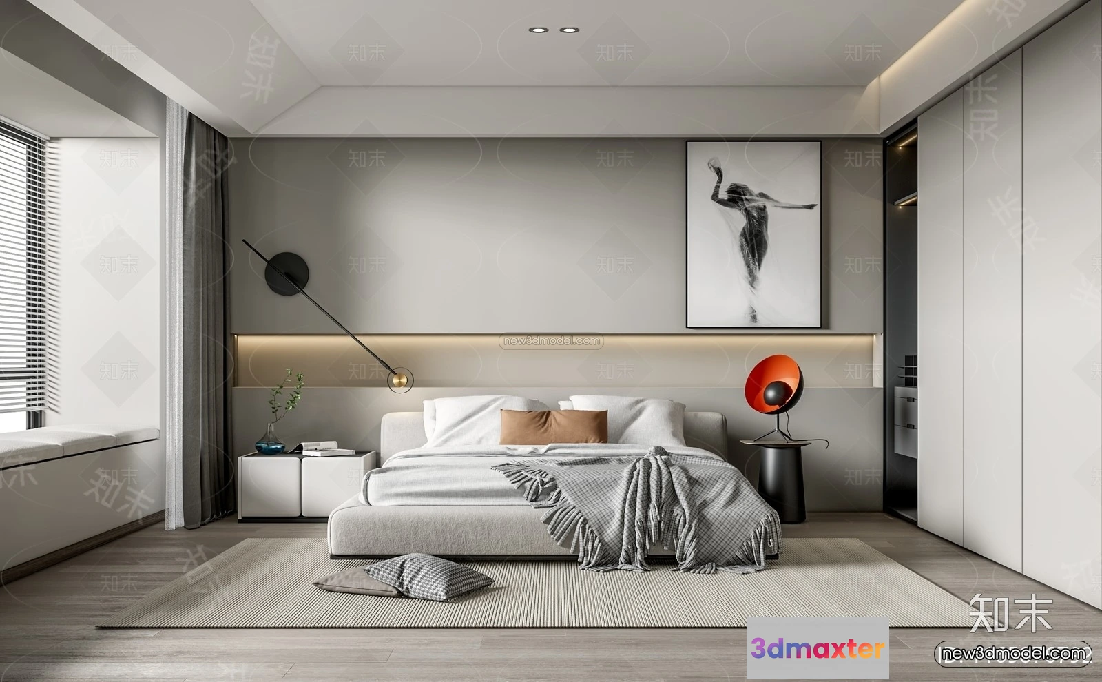 3D Models / 3D Scenes / Interior / Bedroom / Minimalist Style Interior 3D Blocks – Bedroom 3D Model – 172 3D Max
