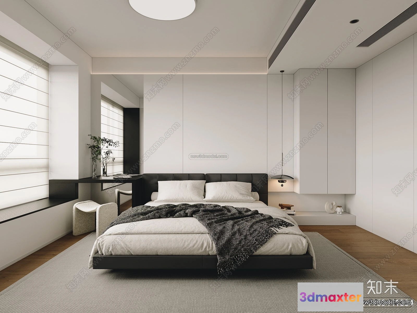 3D Models / 3D Scenes / Interior / Bedroom / Minimalist Style Interior 3D Blocks – Bedroom 3D Model – 179 3D Max