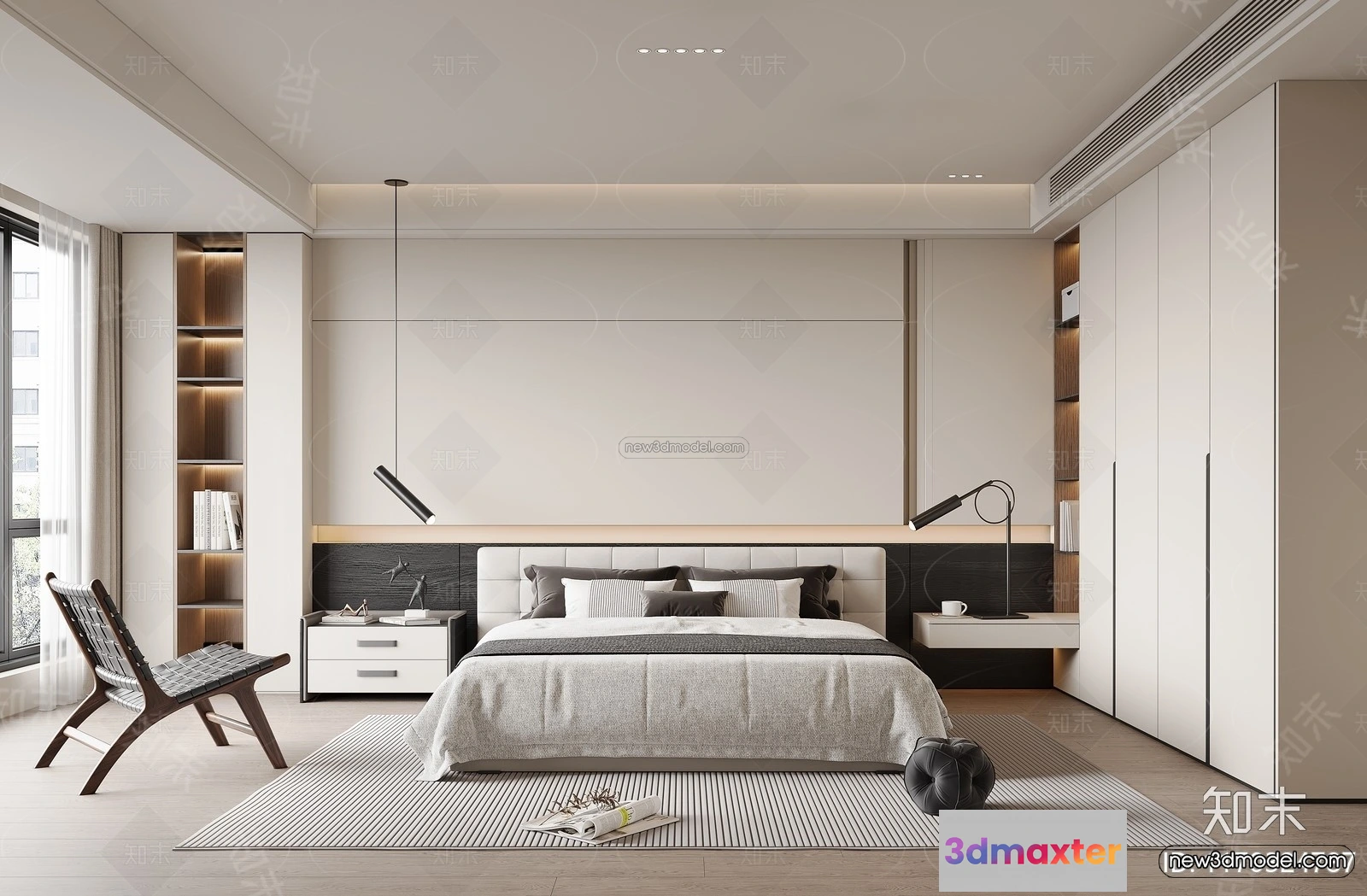 3D Models / 3D Scenes / Interior / Bedroom / Minimalist Style Interior 3D Blocks – Bedroom 3D Model – 181 3D Max