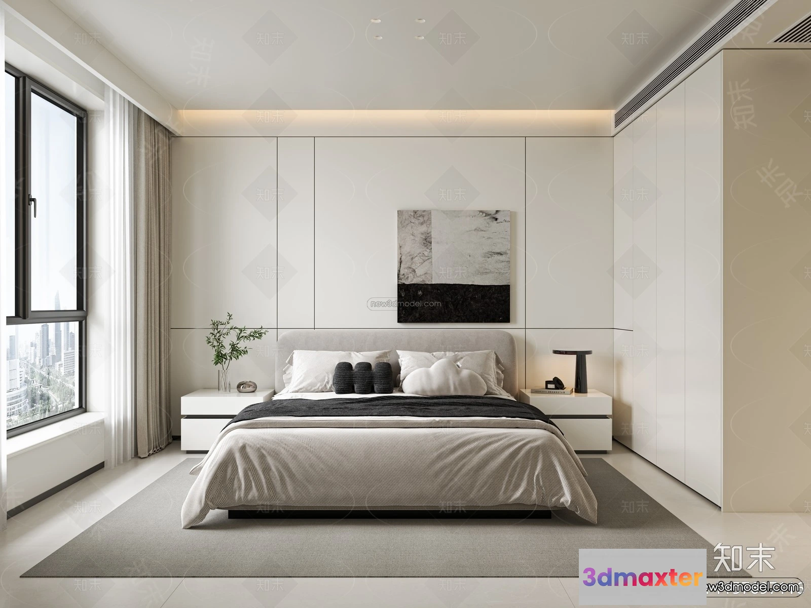 3D Models / 3D Scenes / Interior / Bedroom / Minimalist Style Interior 3D Blocks – Bedroom 3D Model – 183 3D Max