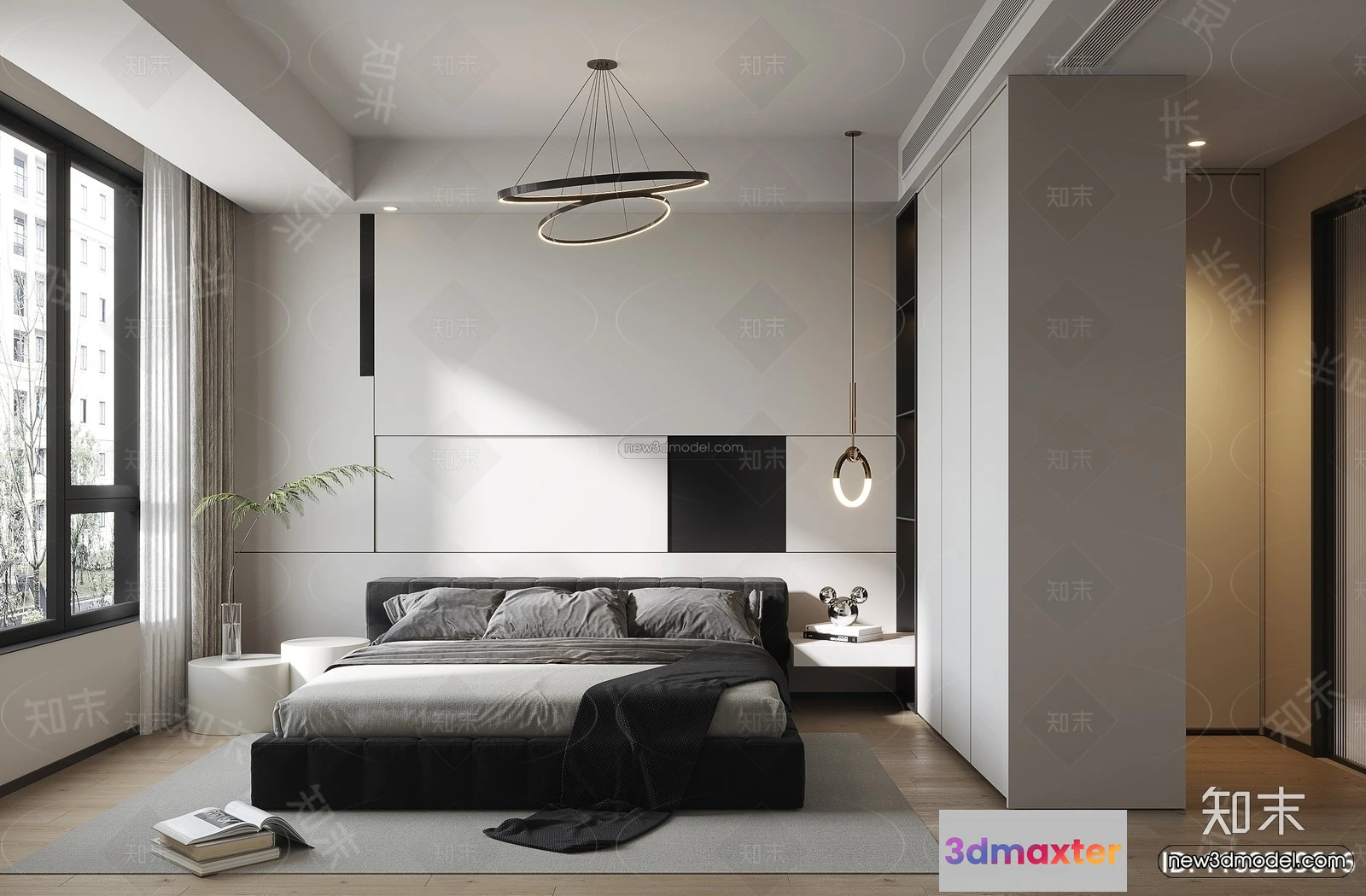 3D Models / 3D Scenes / Interior / Bedroom / Minimalist Style Interior 3D Blocks – Bedroom 3D Model – 185 3D Max