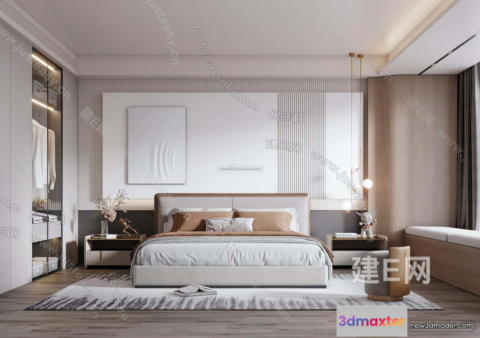 Minimalist Style Interior 3D Blocks – Bedroom 3D Model – 188 – Bedroom 3D Model – VRAY
