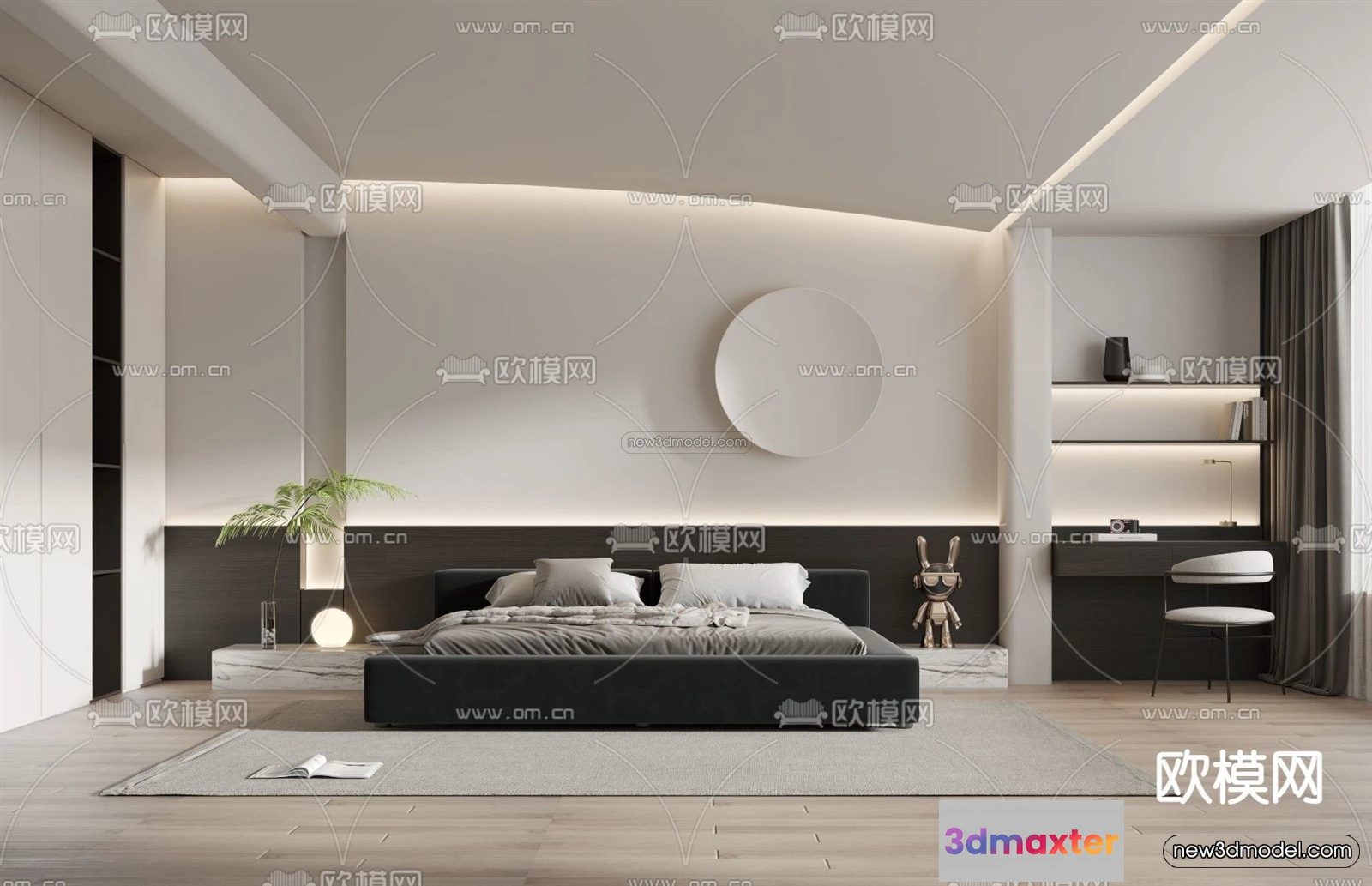 Minimalist Style Interior 3D Blocks – Bedroom 3D Model – 202 – Bedroom 3D Model – VRAY
