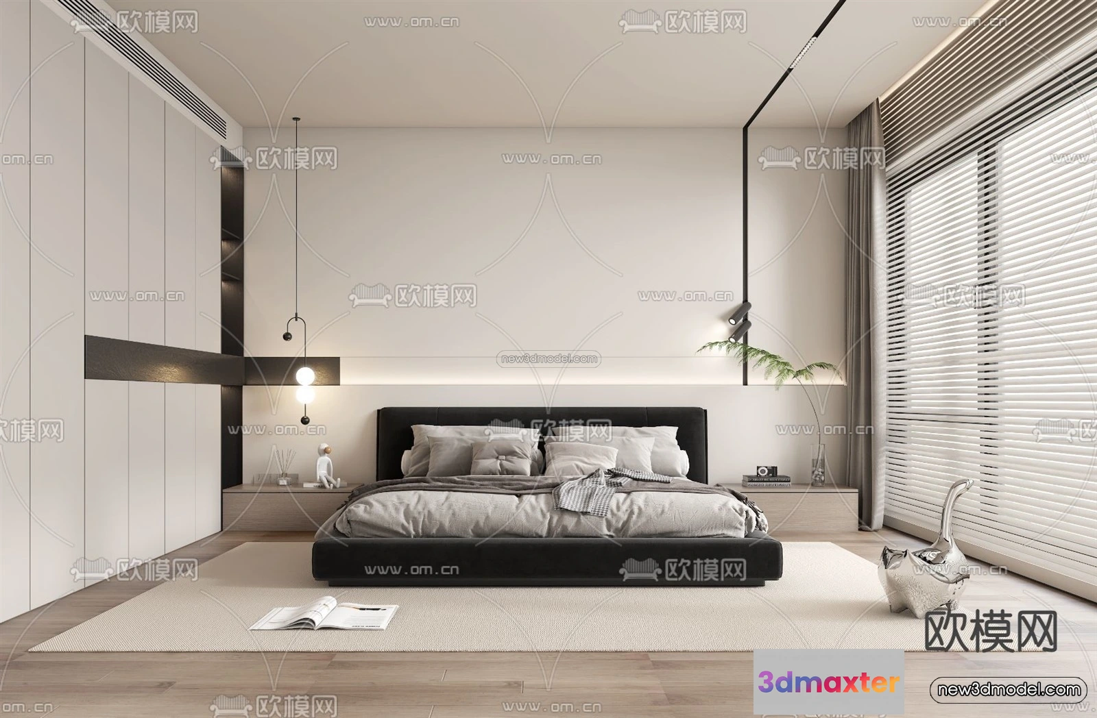 3D Models / 3D Scenes / Interior / Bedroom / Minimalist Style Interior 3D Blocks – Bedroom 3D Model – 209 3D Max