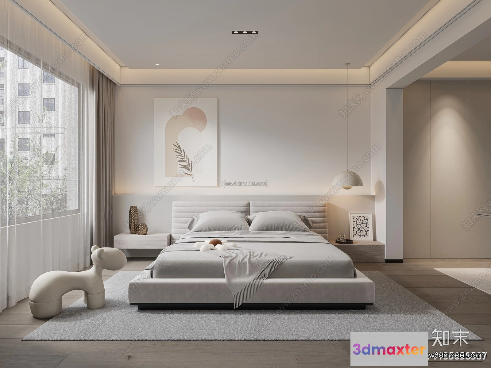 3D Models / 3D Scenes / Interior / Bedroom / Minimalist Style Interior 3D Blocks – Bedroom 3D Model – 223 3D Max