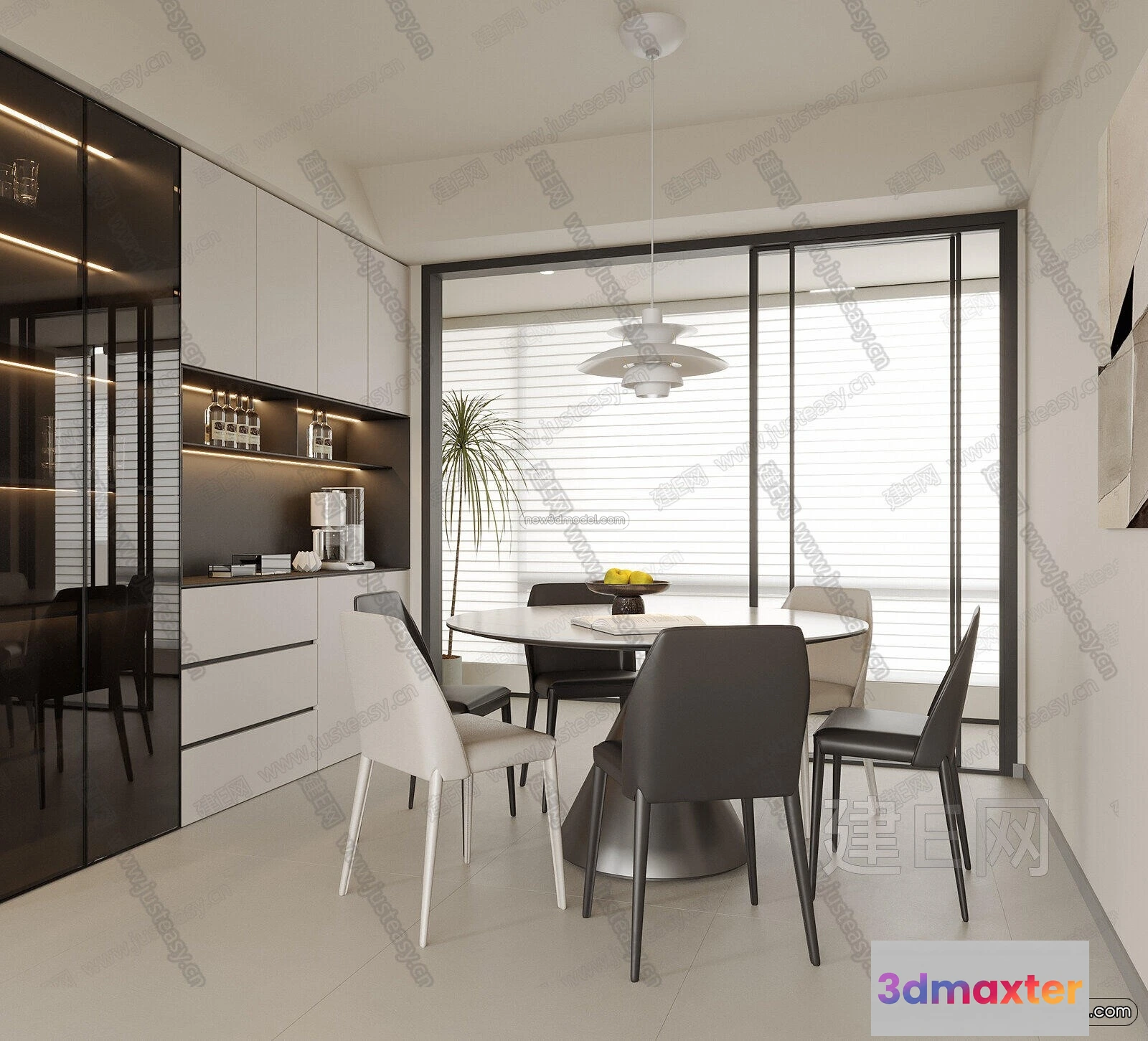 3D Models / 3D Scenes / Interior / Dining Room / Minimalist Style Interior 3D Blocks – Dining Room 3D Model – 227 3D Max