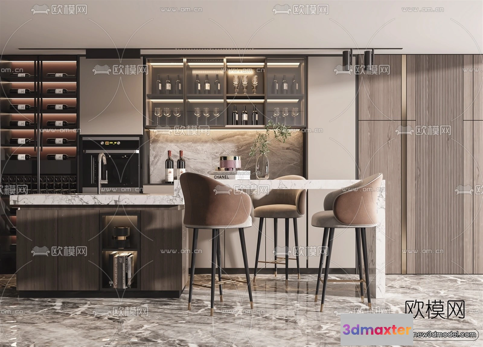 3D Models / 3D Scenes / Interior / Dining Room / Minimalist Style Interior 3D Blocks – Dining Room 3D Model – 230 3D Max