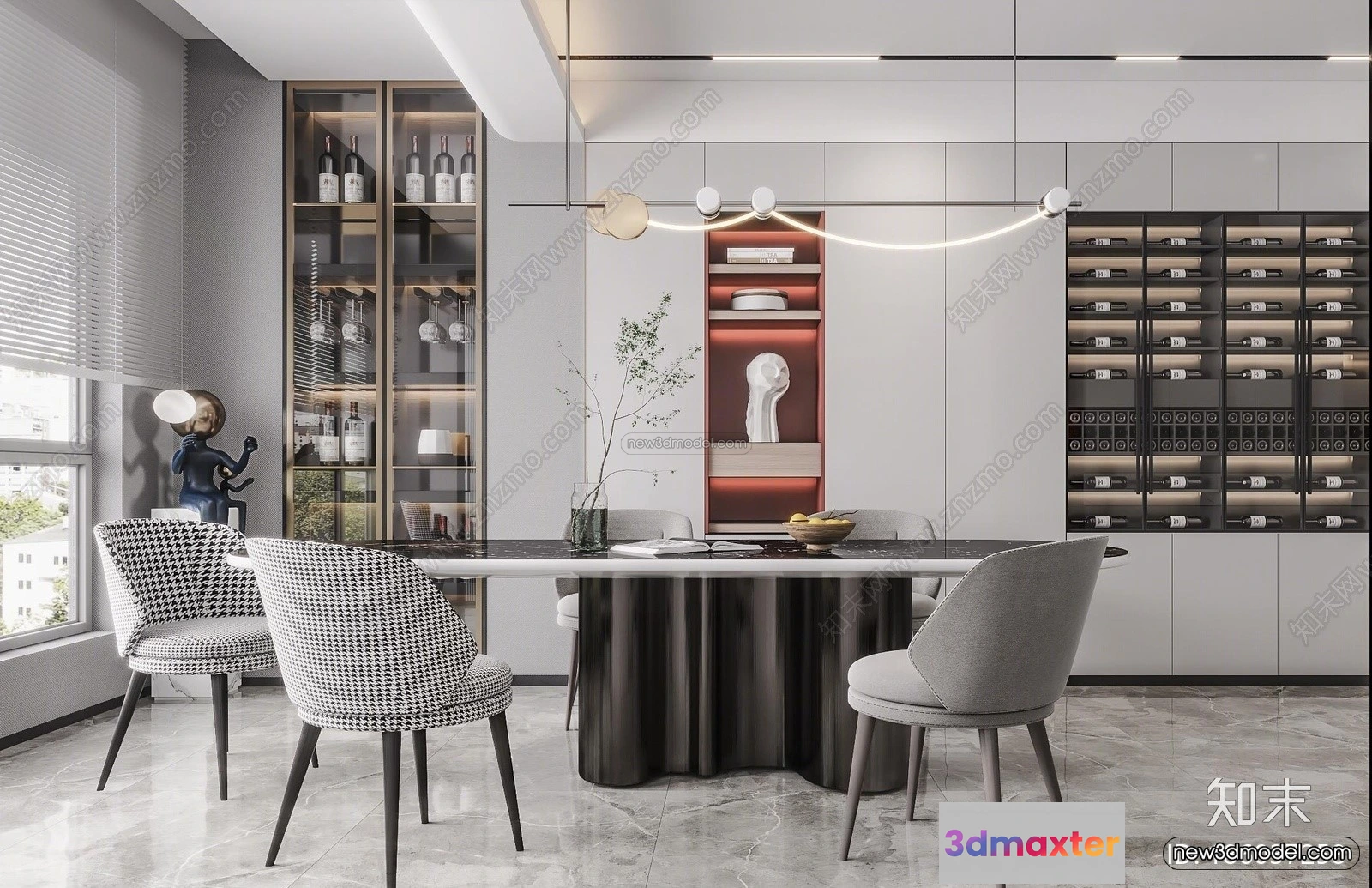 3D Models / 3D Scenes / Interior / Dining Room / Minimalist Style Interior 3D Blocks – Dining Room 3D Model – 231 3D Max