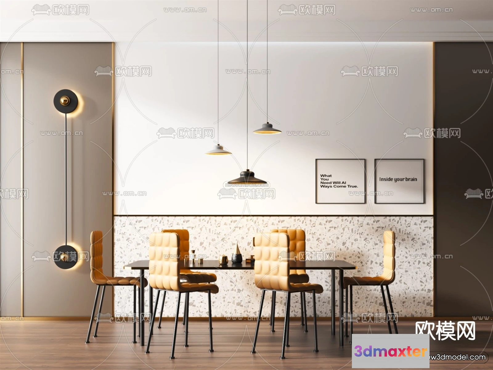 Minimalist Style Interior 3D Blocks – Dining Room 3D Model – 232 – Dining Room 3D Model – VRAY