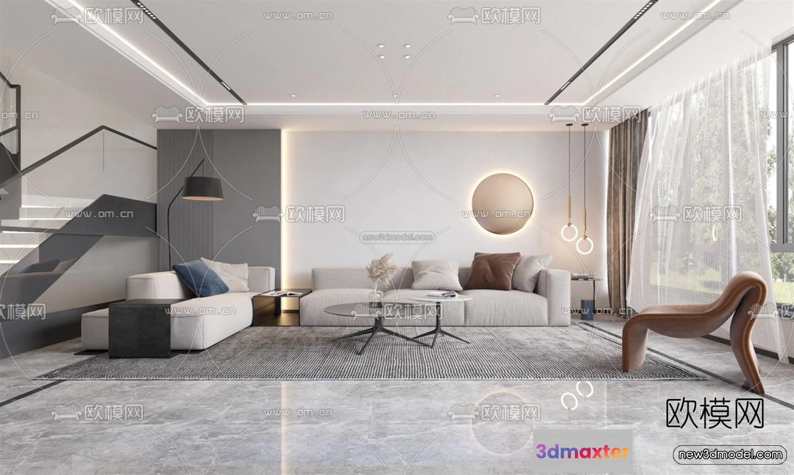 Minimalist Style Interior 3D Blocks – Living Room 3D Model – 019 – Living room 3D Model – VRAY
