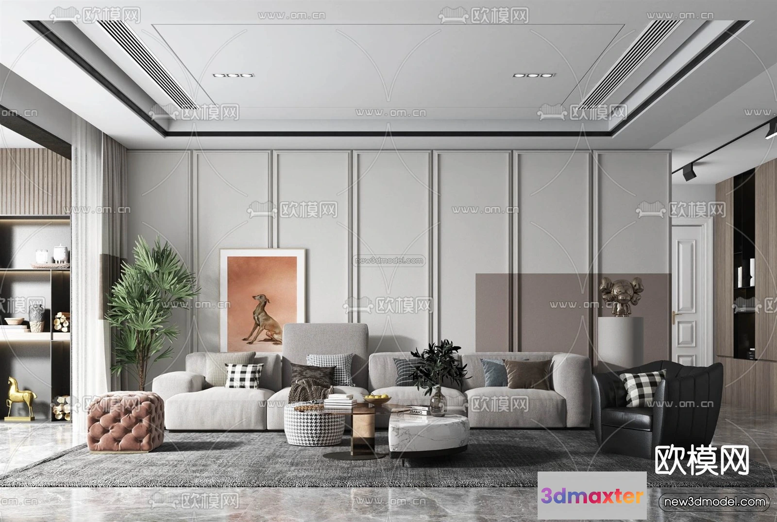 - Name: Minimalist Style Interior 3D Blocks – Living Room 3D Model – 024