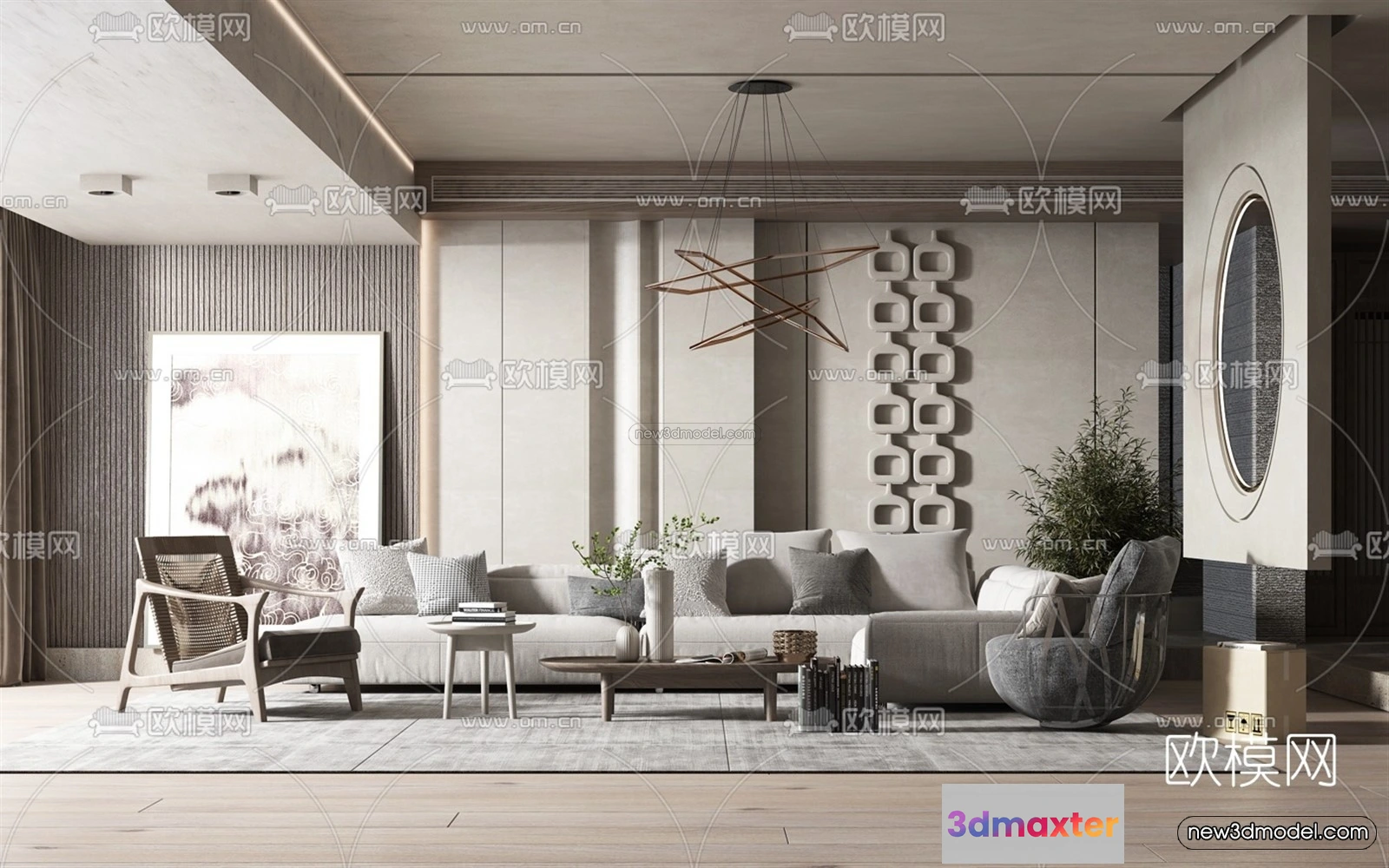 Minimalist Style Interior 3D Blocks – Living Room 3D Model – 028 – Living room 3D Model – VRAY