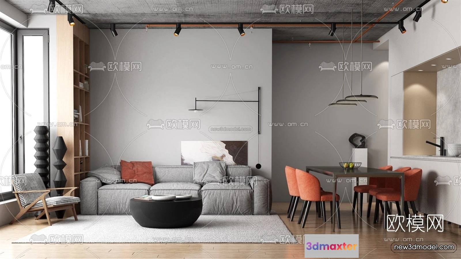 3D Models / 3D Scenes / Interior / Living Room / Minimalist Style Interior 3D Blocks – Living Room 3D Model – 035 3D Max