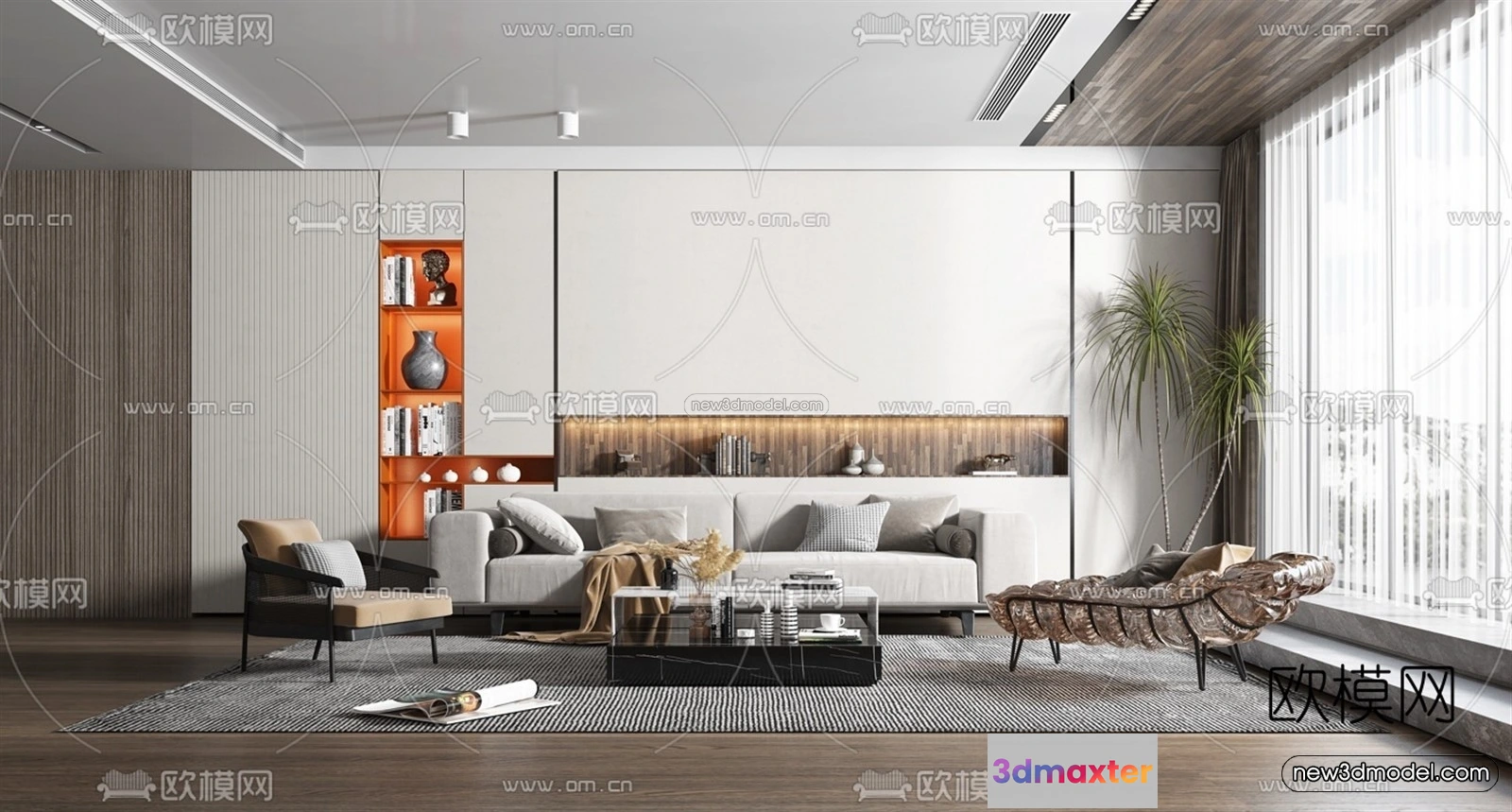 Minimalist Style Interior 3D Blocks – Living Room 3D Model – 037 – Living room 3D Model – VRAY