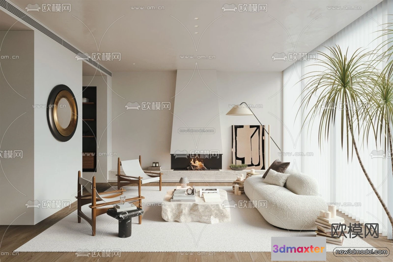 Minimalist Style Interior 3D Blocks – Living Room 3D Model – 052 – Living room 3D Model – VRAY