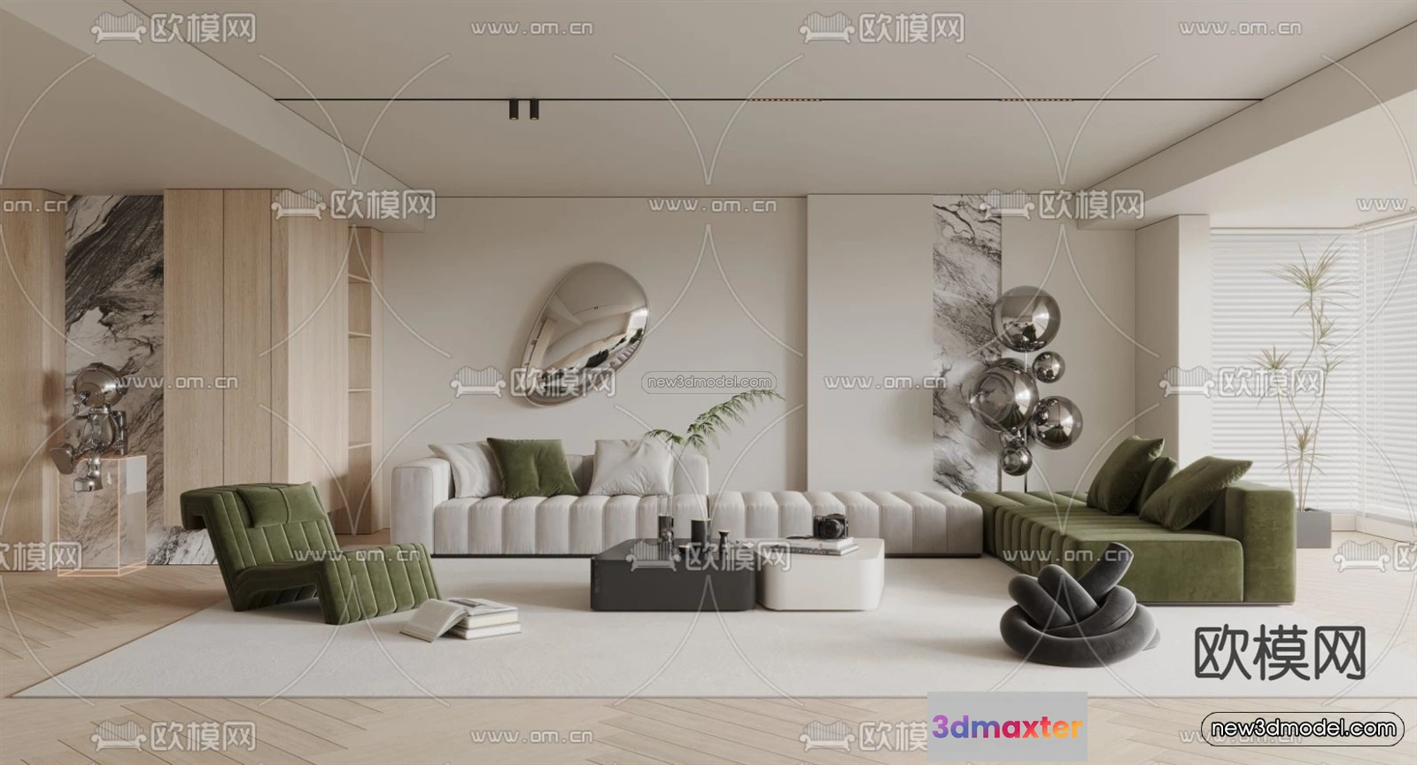 - Name: Minimalist Style Interior 3D Blocks – Living Room 3D Model – 054