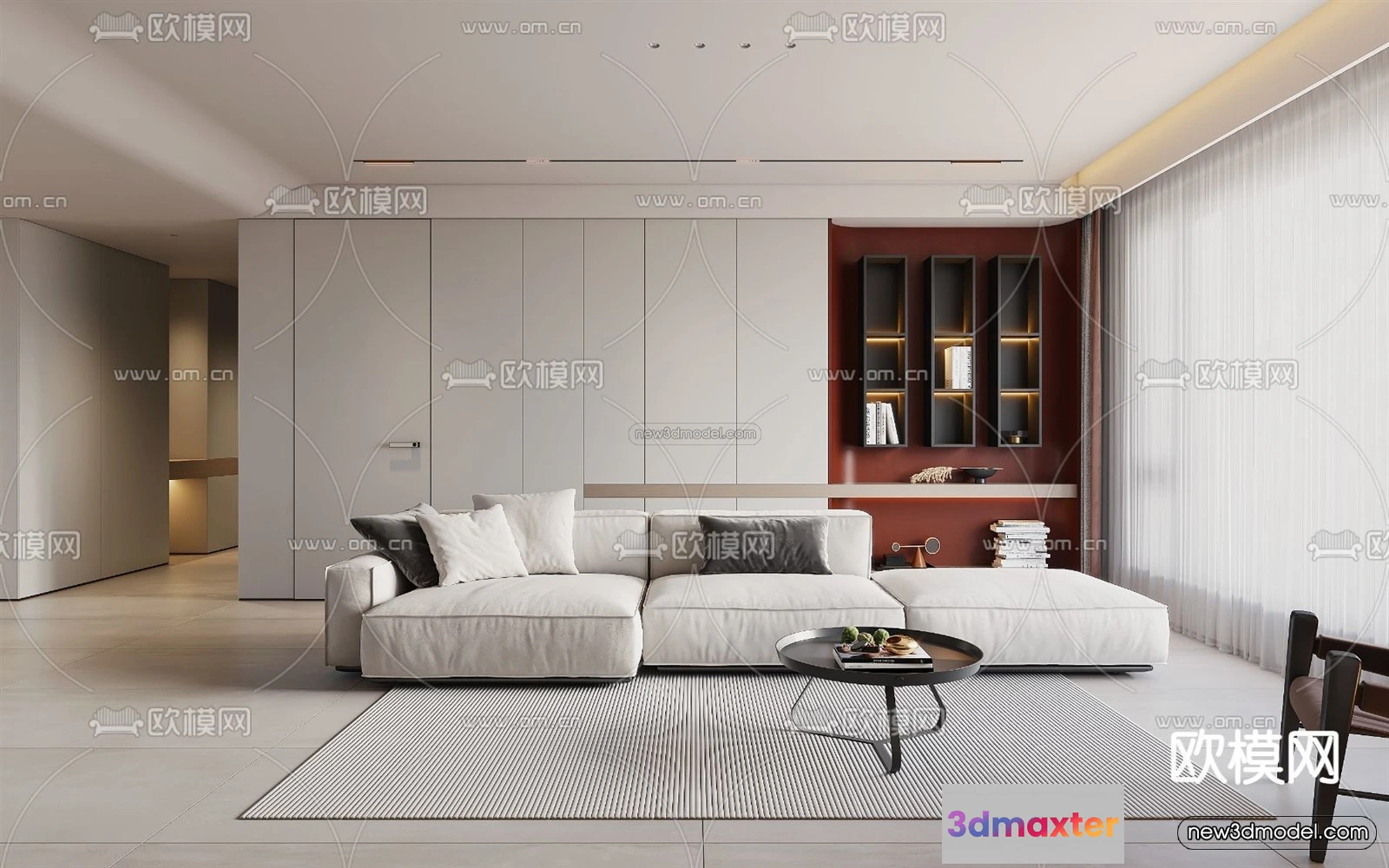 Minimalist Style Interior 3D Blocks – Living Room 3D Model – 062 – Living room 3D Model – VRAY