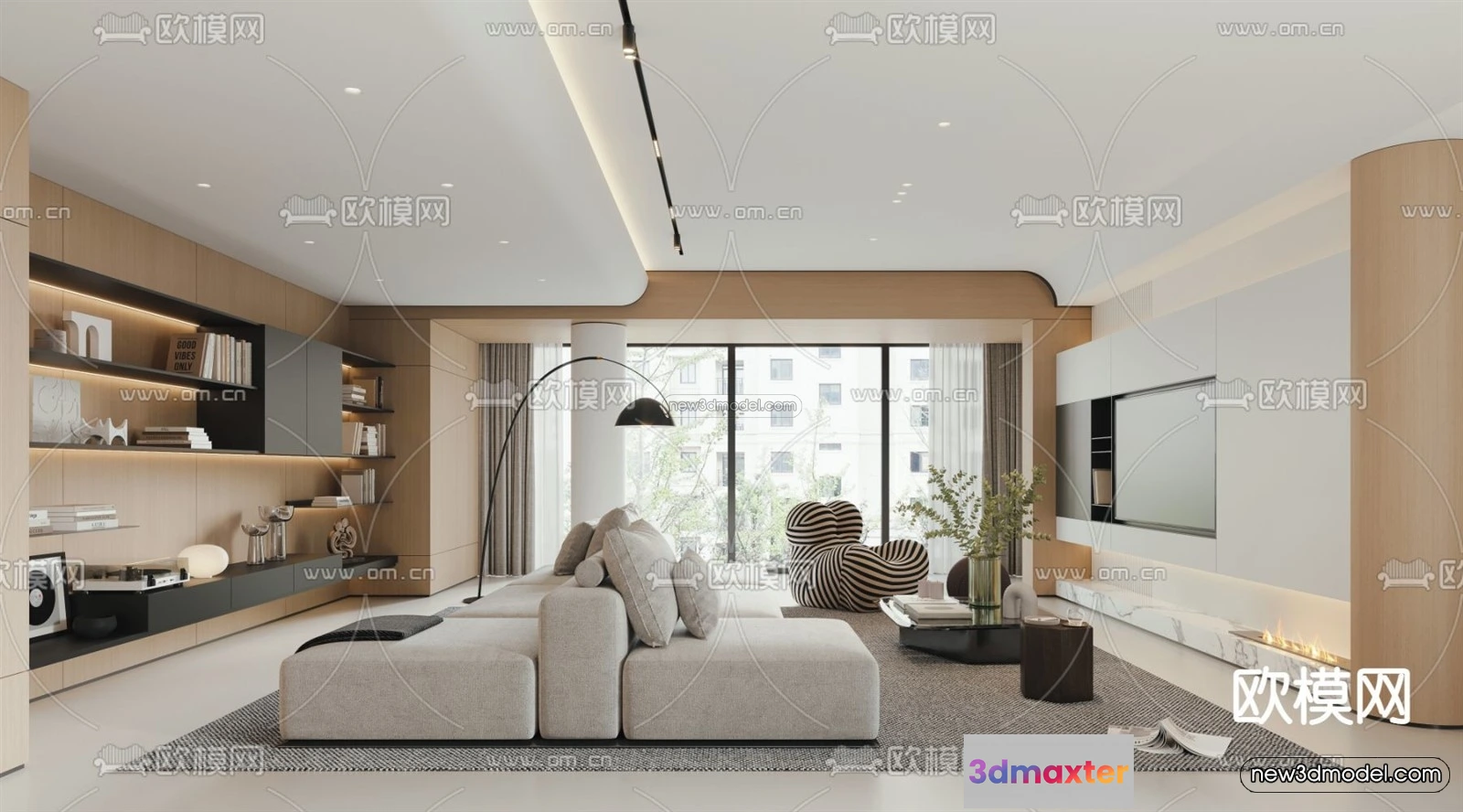 Minimalist Style Interior 3D Blocks – Living Room 3D Model – 065 – Living room 3D Model – VRAY