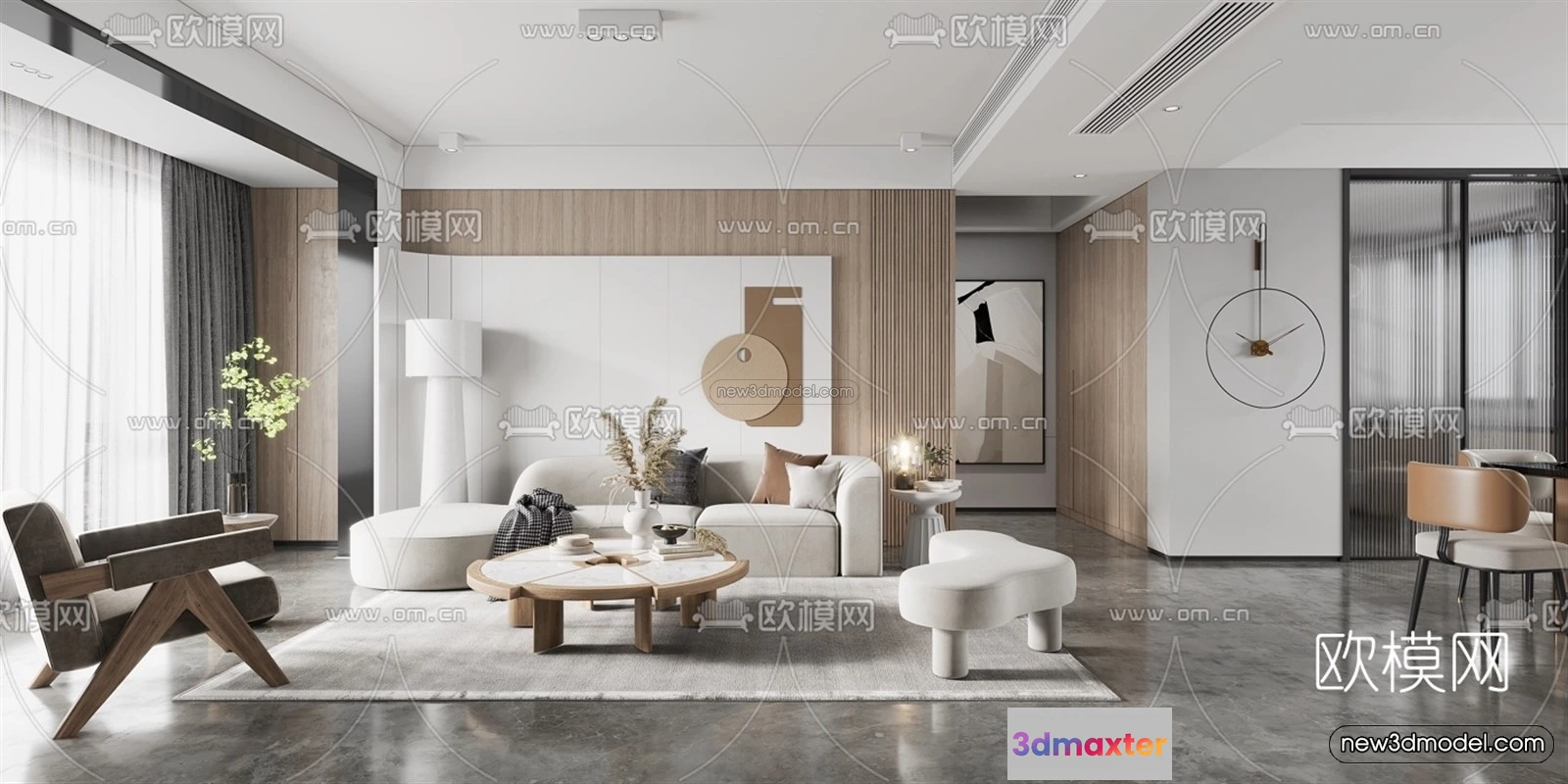 Minimalist Style Interior 3D Blocks – Living Room 3D Model – 092 – Living room 3D Model – VRAY