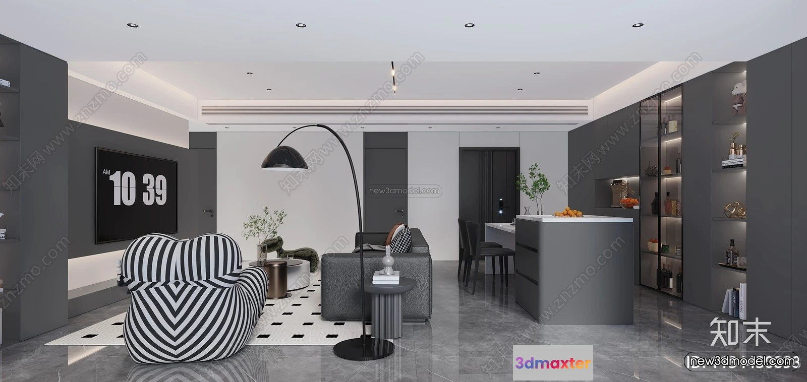 Minimalist Style Interior 3D Blocks – Living Room 3D Model – 095 – Living room 3D Model – VRAY