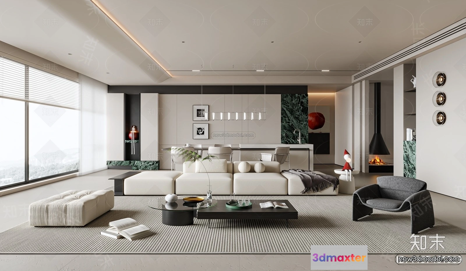 - Name: Minimalist Style Interior 3D Blocks – Living Room 3D Model – 097