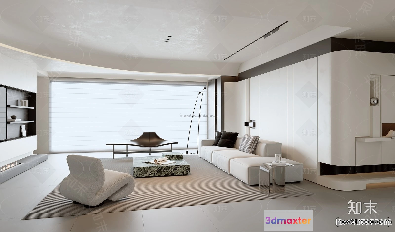Minimalist Style Interior 3D Blocks – Living Room 3D Model – 120 – Living room 3D Model – VRAY